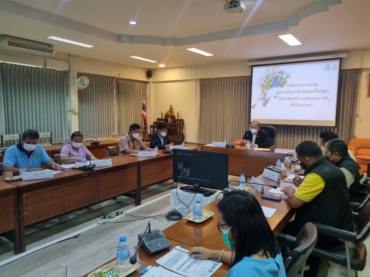 เมื่อวันศุกร์ที่ 9 กันยายน 2565 เวลา 09.30 น. นายณัฏฐ์ฤพงศ์ ภูบัวเพชร ผู้อำนวยการสถานีอุตุนิยมวิทยาราชบุรี ร่วมประชุมบูรณาการป้องกันและแก้ไขปัญหาไฟป่า หมอกควัน และฝุ่นละออง (PM2.5) ครั้งที่ 2/2565 โดยมี ดร.สุทธิพล เอี่ยมประเสริฐกุล ผู้อำนวยการสำนักงานสิ่งแวดล้อมและควบคุมมลพิษที่ 8 เป็นประธาน ณ ห้องประชุมรวงผึ้ง ชั้น 2 อาคารสำนักงานสิ่งแวดล้อมและควบคุมมลพิษที่ 8 (ราชบุรี) อำเภอเมือง จังหวัดราชบุรี ผู้เข้าร่วมประชุมประกอบด้วยหน่วยงานทั้งภาครัฐและเอกชน ดังนี้ สำนักงานทรัพยากรธรรมชาติและสิ่งแวดล้อมจังหวัดราชบุรี สำนักบริหารพื้นที่อนุรักษ์ที่ 3 (บ้านโป่ง) ศูนย์ป่าไม้จังหวัดราชบุรี สถานีอุตุนิยมวิทยาจังหวัดราชบุรี สำนักงานป้องกันและบรรเทาสาธารณภัยจังหวัดราชบุรี และ สมาคมเครื่องเคลือบดินเผาจังหวัดราชบุรี ซึ่งการประชุมครั้งนี้ มีวัตถุประสงค์เพื่อรายงานสถานการณ์การดำเนินงานป้องกันและแก้ไขปัญหาไฟป่า หมอกควัน และฝุ่นละออง (PM2.5) ในปีงบประมาณ พ.ศ.2565 และชี้แจงแนวทางการดำเนินงานในปีงบประมาณ พ.ศ.2566 ภายใต้แผนปฏิบัติการขับเคลื่อนวาระแห่งชาติ “การแก้ไขปัญหามลพิษด้านฝุ่นละออง”และ แผนเฉพาะกิจ เพื่อแก้ไขปัญหามลพิษด้านฝุ่นละออง พร้อมทั้งแจ้งให้ที่ประชุมทราบ เรื่องการเปลี่ยนแปลงค่ามาตรฐานฝุ่นละอองขนาดไม่เกิน 2.5 ไมครอน ตามประกาศคณะกรรมการสิ่งแวดล้อมแห่งชาติ ในบรรยากาศโดยทั่วไป ค่าเฉลี่ยในเวลา 24 ชั่วโมง จะต้องไม่เกิน 37.5 ไมโครกรัมต่อลูกบาศก์เมตร โดยมีผลบังคับ ตั้งแต่วันที่ 1 มิถุนายน พ.ศ. 2566 เป็นต้นไป25 กันยายน 2565