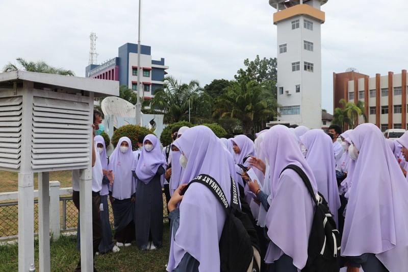เมื่อวันพฤหัสบดีที่ 8 กันยายน 2565 เวลา 09.30 น. นักเรียนระดับชั้นมัธยมศึกษา โรงเรียนส่งเสริมศาสน์ อำเภอยะหริ่ง จังหวัดปัตตานี จำนวน 60 คน พร้อมครู 6 คน เข้าศึกษาดูงาน ณ ศูนย์อุตุนิยมวิทยาภาคใต้ฝั่งตะวันออก (ศอ.) โดยเข้าชมและรับฟังการบรรยายความรู้ด้านอุตุนิยมวิทยาเกี่ยวกับการตรวจอากาศผินพื้น การตรวจอากาศชั้นบน และการพยากรณ์อากาศ จากวิทยากร ดังนี้ นายแสงเพชร อินตา เจ้าพนักงานอุตุนิยมวิทยาชำนาญงาน นางสาวสุไรยา แกมะ เจ้าพนักงานอุตุนิยมวิทยาชำนาญงาน และนางสาวอรณิชา พันธุรัตน์ นักอุตุนิยมวิทยาปฏิบัติการ