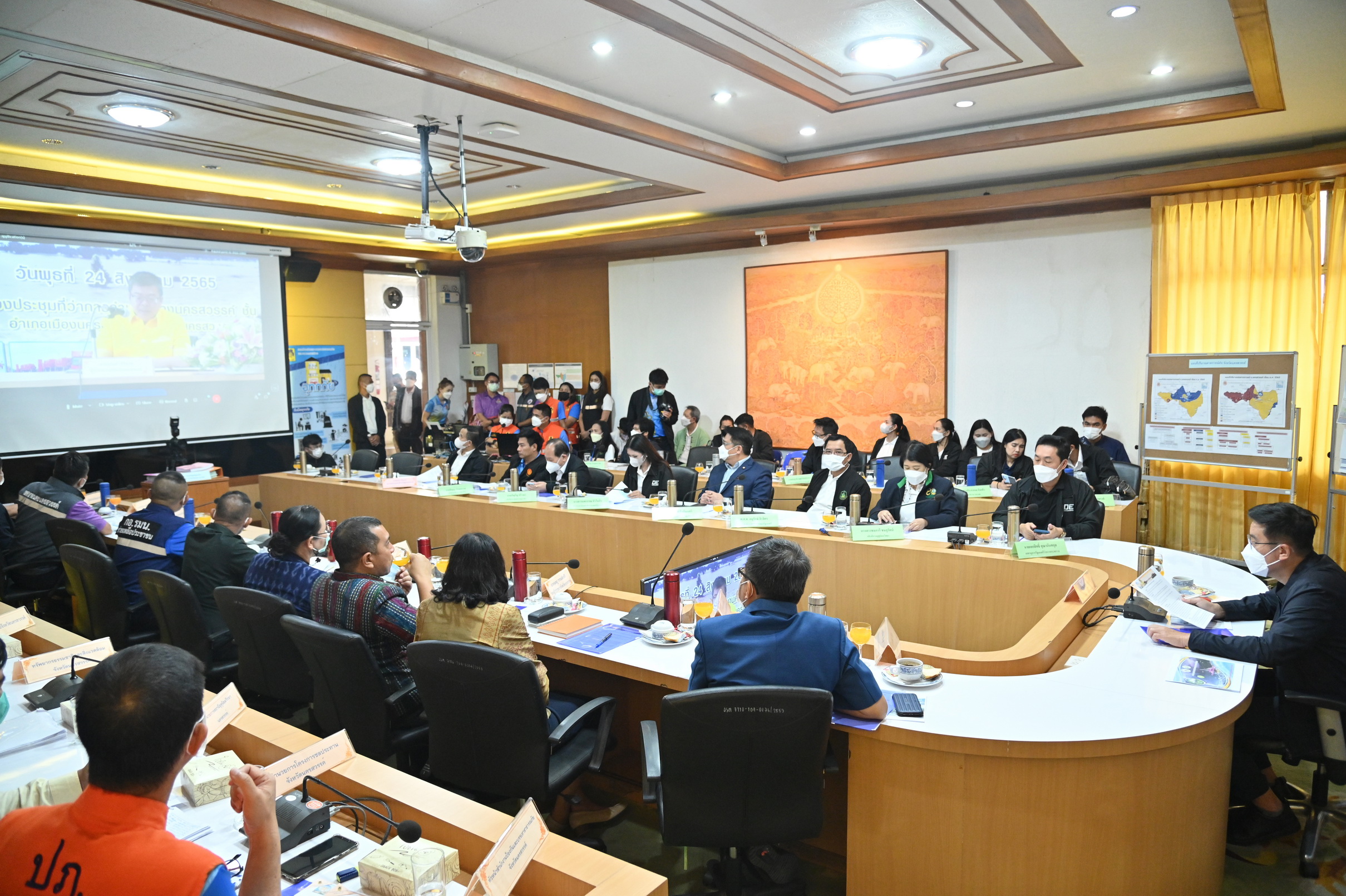 ดร. ชมภารี ให้ข้อมูลว่า ปริมาณฝนสะสมในปีนี้ (1 ม.ค.-9 ต.ค. 2565) ทั้งประเทศสูงกว่าค่าปกติ 25% สำหรับจังหวัดนครสวรรค์ ปริมาณฝนมากกว่าค่าปกติ 17.64% โดยที่ประชุมได้รายงานสถานการณ์อุทกภัยจังหวัดนครสวรรค์ว่า เนื่องจากลักษณะทางกายภาพของจังหวัดนครสวรรค์ที่ตั้งอยู่ในพื้นที่ของลุ่มน้ำต่าง ๆ ทำให้ประสบปัญหาอุทกภัยเป็นบริเวณกว้าง สร้างความเสียหายต่อชีวิตและทรัพย์สินของประชาชนเป็นจำนวนมาก โดยอุทกภัยที่เกิดขึ้นในพื้นที่จะมี 2 ลักษณะ คือ 1) อุทกภัยจากน้ำไหลหลาก และ 2) อุทกภัยจากน้ำเอ่อล้นตลิ่งจากแม่น้ำและลำน้ำสาขาต่าง ๆ
