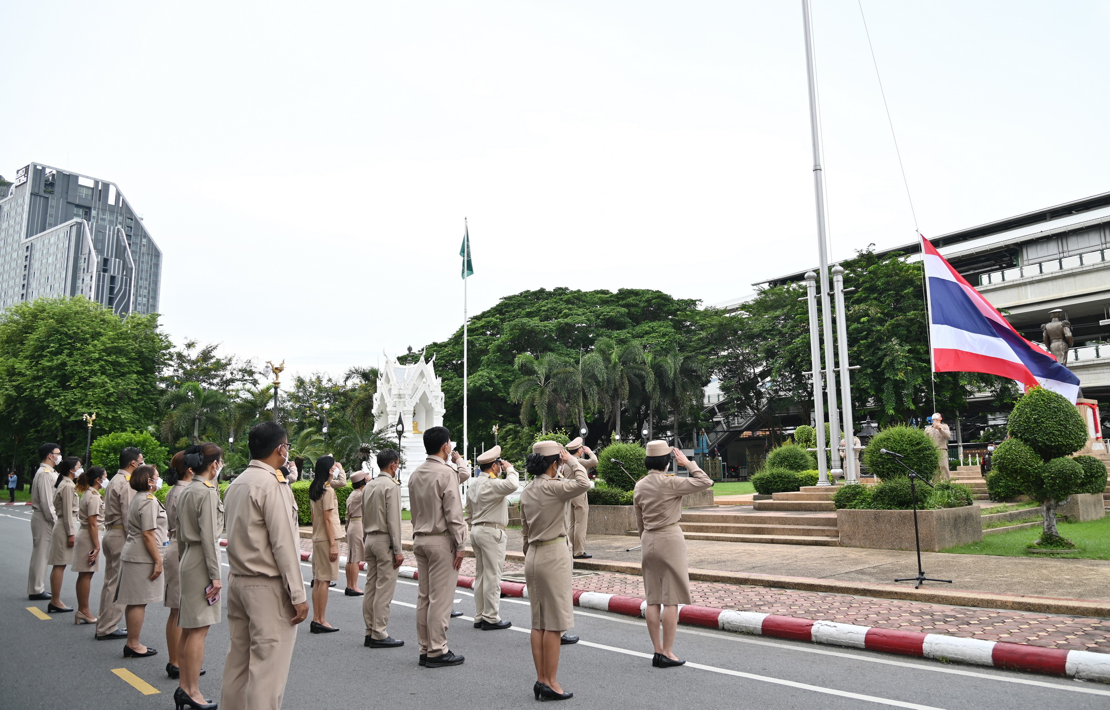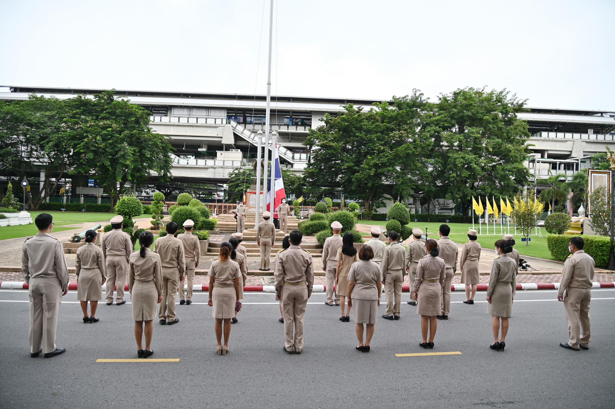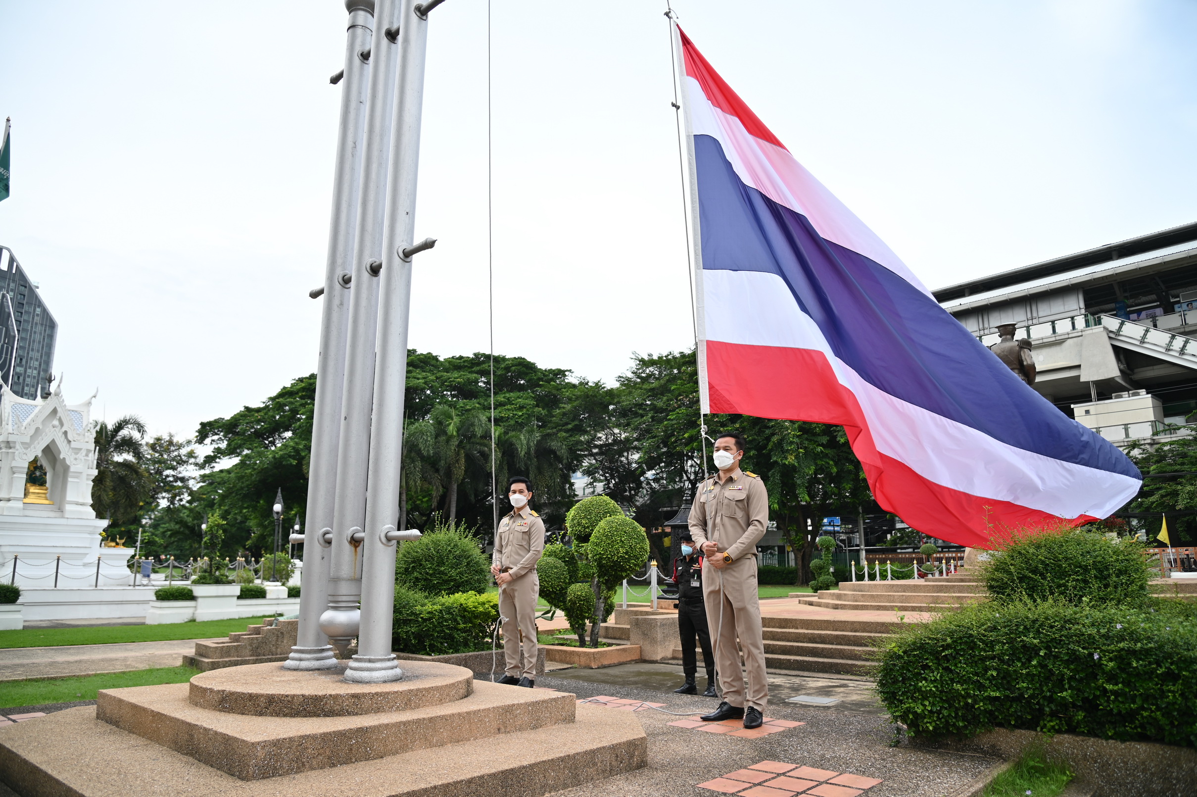วันนี้ (28 กันยายน 2565) เวลา 08.00 น. ว่าที่ร้อยตรี ธนะสิทธิ์ เอี่ยมอนันชัย รองอธิบดีกรมอุตุนิยมวิทยา ฝ่ายวิชาการ พร้อมด้วยนายธนาวุฒิ ปัญจพรอุดมลาภ รองอธิบดีกรมอุตุนิยมวิทยา ฝ่ายปฏิบัติการ นางสาวสิริน้อย องค์ศิริวิทยา รองอธิบดีกรมอุตุนิยมวิทยา ฝ่ายบริหาร คณะผู้บริหารและข้าราชการกรมอุตุนิยมวิทยา ร่วมเข้าแถวเคารพธงชาติ และร้องเพลงชาติเพื่อแสดงความรักและความภาคภูมิใจในความเป็นชาติไทย และน้อมรำลึกถึงพระบาทสมเด็จพระมงกุฎเกล้าเจ้าอยู่หัวที่พระราชทานธงไตรรงค์เป็นธงชาติไทย บริเวณด้านหน้าอาคาร 50 ปี อุตุนิยมวิทยา
