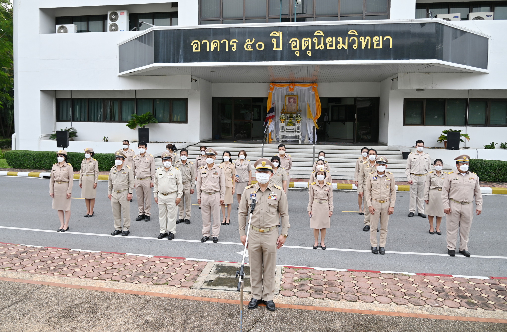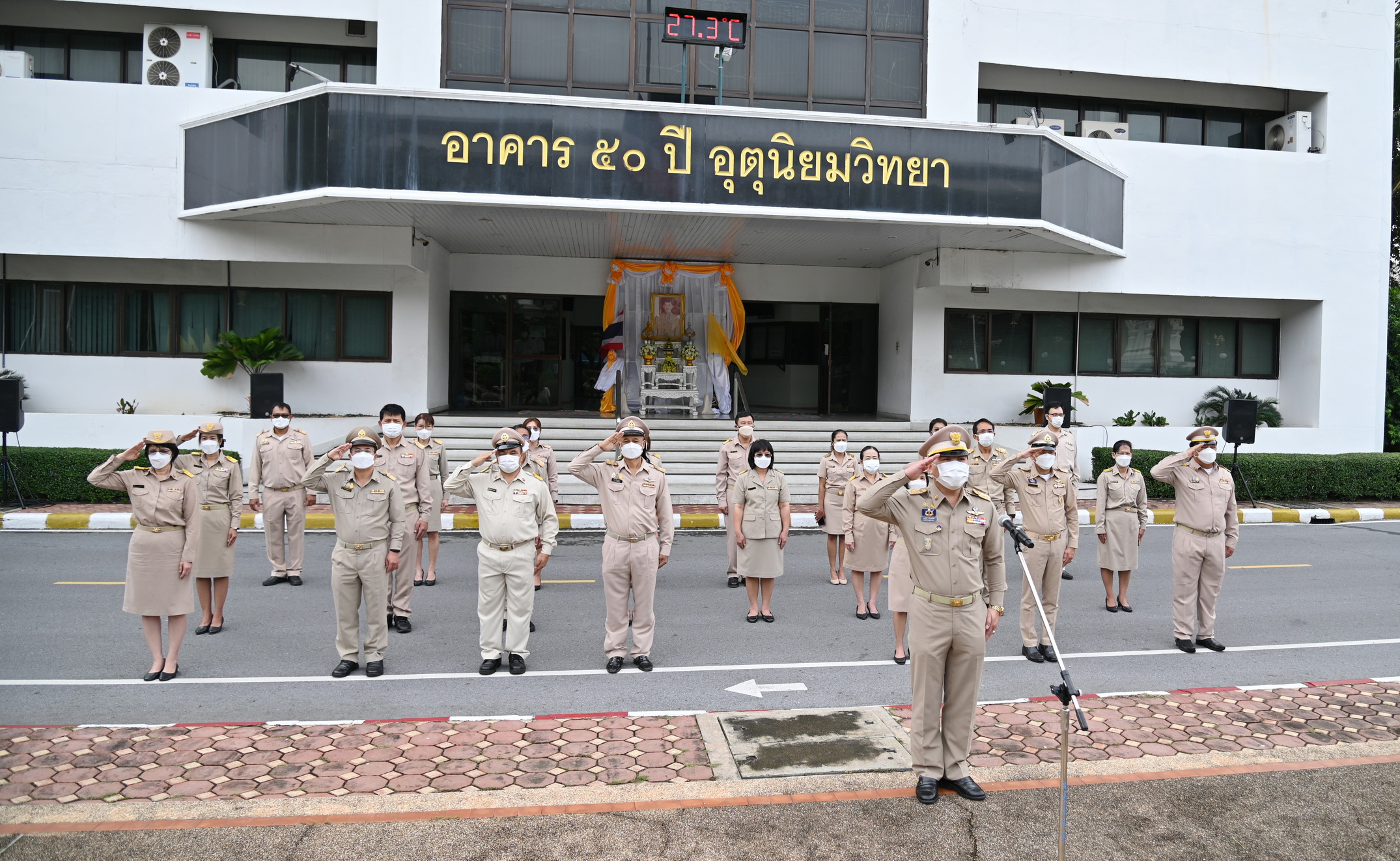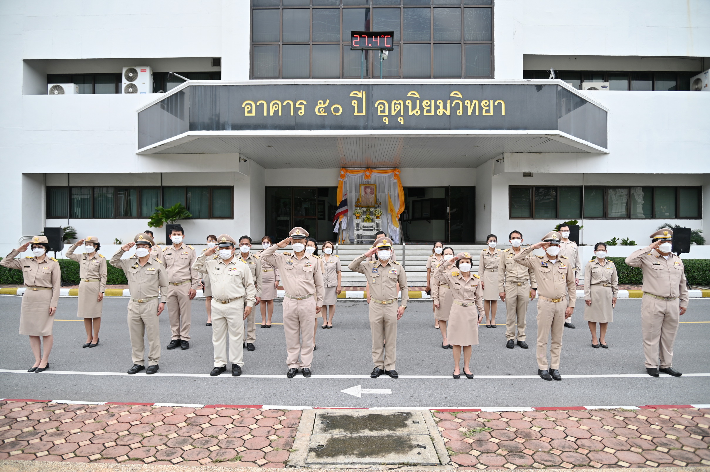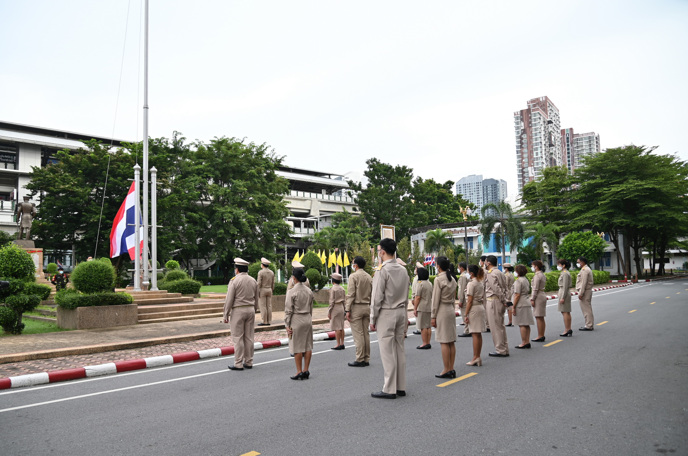 วันนี้ (28 กันยายน 2565) เวลา 08.00 น. ว่าที่ร้อยตรี ธนะสิทธิ์ เอี่ยมอนันชัย รองอธิบดีกรมอุตุนิยมวิทยา ฝ่ายวิชาการ พร้อมด้วยนายธนาวุฒิ ปัญจพรอุดมลาภ รองอธิบดีกรมอุตุนิยมวิทยา ฝ่ายปฏิบัติการ นางสาวสิริน้อย องค์ศิริวิทยา รองอธิบดีกรมอุตุนิยมวิทยา ฝ่ายบริหาร คณะผู้บริหารและข้าราชการกรมอุตุนิยมวิทยา ร่วมเข้าแถวเคารพธงชาติ และร้องเพลงชาติเพื่อแสดงความรักและความภาคภูมิใจในความเป็นชาติไทย และน้อมรำลึกถึงพระบาทสมเด็จพระมงกุฎเกล้าเจ้าอยู่หัวที่พระราชทานธงไตรรงค์เป็นธงชาติไทย บริเวณด้านหน้าอาคาร 50 ปี อุตุนิยมวิทยา