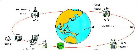 1. ชนิดวงโคจรค้างฟ้า (Geostationary Meteorological Satellite) โคจรรอบโลกใช้เวลา 24 ชั่วโมง เท่ากับโลกหมุนรอบตัวเอง โดยวงโคจรอยู่ในตำแหน่งเส้นศูนย์สูตรของโลกมีความสูงจากพื้นโลกประมาณ 35,800 กิโลเมตร และโคจรไปในทางเดียวกับการหมุนของโลก ทำให้ตำแหน่งดาวเทียมจะสัมพันธ์กับตำแหน่งบนพื้นโลกในบริเวณเดิมเสมอ
