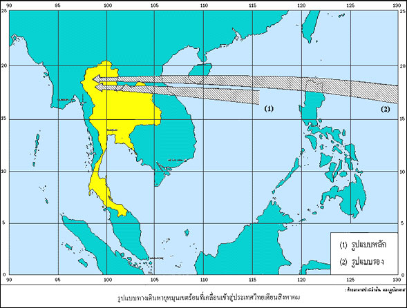 (รูป) รูปแบบทางเดินพายุหมุนเขตร้อนที่เคลื่อนที่เข้าสู่ประเทศไทย เดือนสิงหาคม