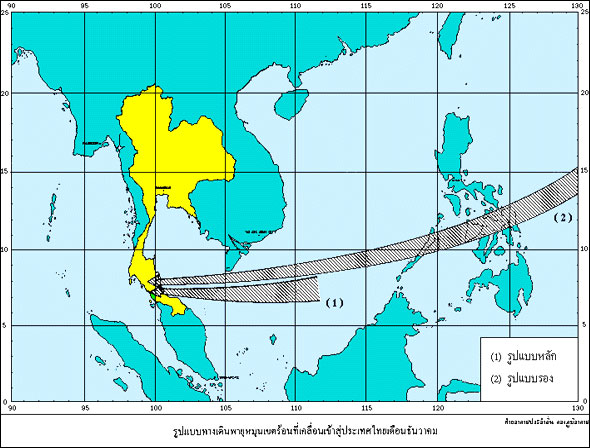 (รูป) รูปแบบทางเดินพายุหมุนเขตร้อนที่เคลื่อนที่เข้าสู่ประเทศไทย เดือนธันวาคม