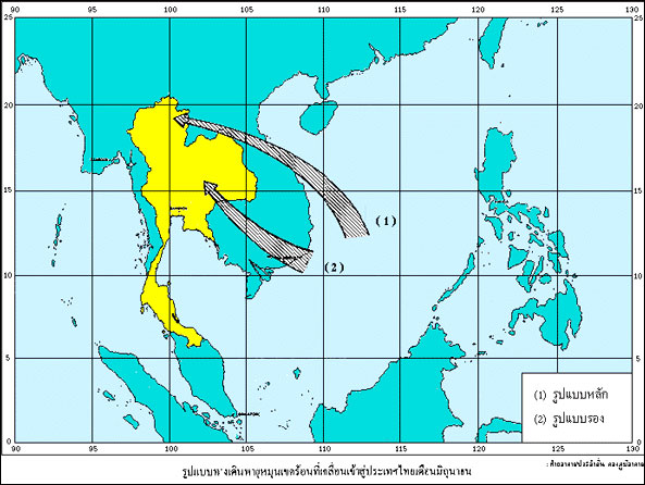 รูปแบบทางเดินพายุที่เคลื่อนเข้าสู่ประเทศไทย