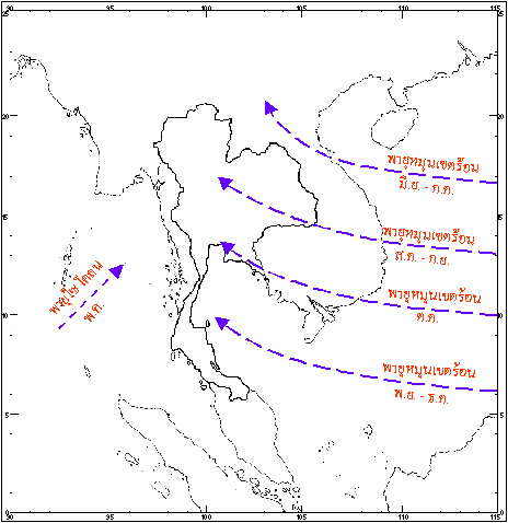 พายุเริ่มมีโอกาสเคลื่อนเข้าสู่ประเทศไทยมากขึ้น ตั้งแต่เดือนพฤษภาคมโดยส่วนใหญ่ยังคงเป็นพายุที่เคลื่อนมาจากด้านตะวันตก เข้าสู่ประเทศไทยตอนบน และตั้งแต่เดือนมิถุนายนเป็นต้นไป พายุส่วนใหญ่จะเคลื่อนเข้าสู่ประเทศไทยทางด้านตะวันออก โดยช่วงระหว่างเดือนมิถุนายนถึงสิงหาคม พายุยังคงเคลื่อนเข้าสู่ประเทศไทยตอนบน ซึ่งบริเวณตอนบนของภาคเหนือ และภาคตะวันออกเฉียงเหนือ เป็นพื้นที่ที่พายุมีโอกาสเคลื่อนผ่านเข้ามามากที่สุด และเดือนกันยายนถึงตุลาคม พายุมีโอกาสเคลื่อนเข้ามาได้ในทุกพื้นที่ โดยเริ่มเคลื่อนเข้าสู่ภาคใต้ตั้งแต่เดือนกันยายน ในสองเดือนนี้เป็นระยะที่พายุมีโอกาสเคลื่อนเข้าสู่ประเทศไทยได้มาก โดยเฉพาะเดือนตุลาคม มีสถิติเคลื่อนเข้ามามากที่สุดในรอบปี สำหรับช่วงปลายปีตั้งแต่เดือนพฤศจิกายน พายุจะเคลื่อนเข้าสู่ประเทศไทยตอนบนได้น้อยลง และมีโอกาสเคลื่อนเข้าสู่ภาคใต้มากขึ้น เมื่อถึงเดือนธันวาคมพายุมีแนวโน้มเคลื่อนเข้าสู่ภาคใต้เท่านั้น โดยไม่มีพายุเคลื่อนเข้าสู่ประเทศไทยตอนบนอีก เนื่องจากในช่วงปลายปีบริเวณความกดอากาศสูง จากประเทศมองโกเลียและจีน นำความหนาวเย็นลงมาสู่ละติจูดต่ำกว่า ระบบอากาศในช่วงนี้จึงไม่เอื้อให้พายุที่เกิดขึ้นเหนือทะเล เคลื่อนตัวขึ้นสู่บริเวณประเทศไทยตอนบน