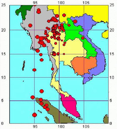 31 สิงหาคม 2542 :ใกล้ พรมแดนไทย-ลาว ขนาด 4.8 ริคเตอร์ รู้สึกได้ที่จังหวัดน่าน