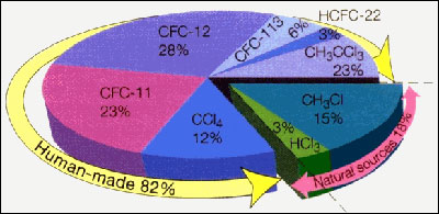 รูปที่ 19 คลอรีนส่วนใหญ่ในบรรยากาศ 82 เปอร์เซ็นต์ มาจากการสังเคราะห์ และ 18 เปอร์เซ็นต์มาจากธรรมชาติ