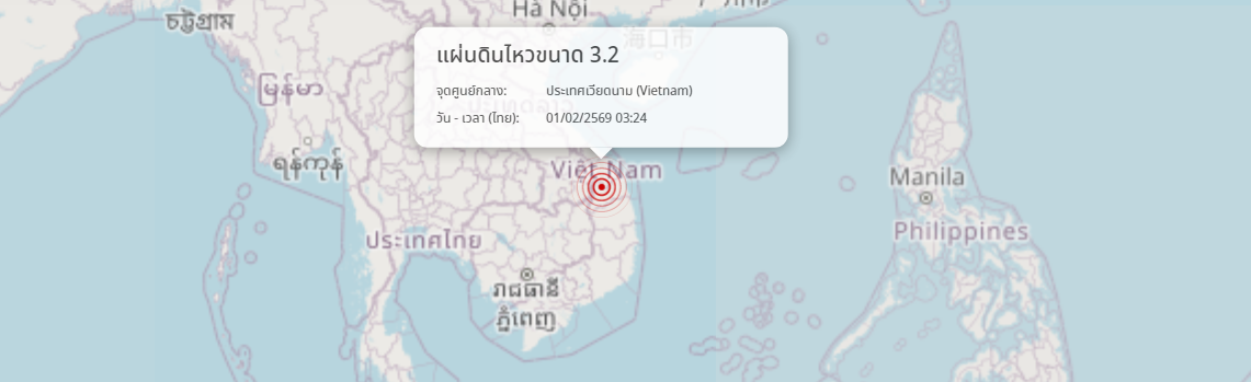 แผ่นดินไหว ประเทศเวียดนาม (Vietnam) ขนาด 3.2