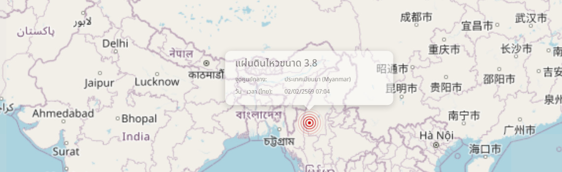 แผ่นดินไหว ประเทศเมียนมา (Myanmar) ขนาด 3.8