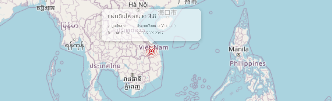 แผ่นดินไหว ประเทศเวียดนาม (Vietnam) ขนาด 3.8