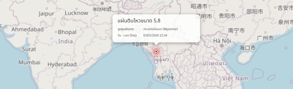 แผ่นดินไหว ประเทศเมียนมา (Myanmar) ขนาด 5.8