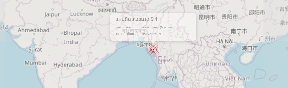 แผ่นดินไหว ประเทศเมียนมา (Myanmar) ขนาด 5.4