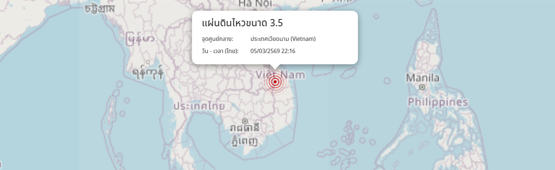 แผ่นดินไหว ประเทศเวียดนาม (Vietnam) ขนาด 3.5