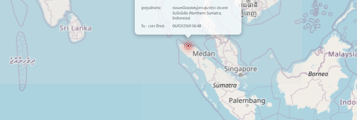 แผ่นดินไหว ตอนเหนือของหมู่เกาะสุมาตรา ประเทศอินโดนีเซีย (Northern Sumatra, Indonesia) ขนาด 3.7