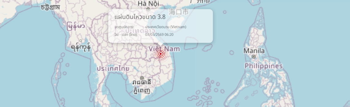 แผ่นดินไหว ประเทศเวียดนาม (Vietnam) ขนาด 3.8