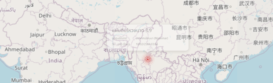 แผ่นดินไหว ประเทศเมียนมา (Myanmar) ขนาด 3.9