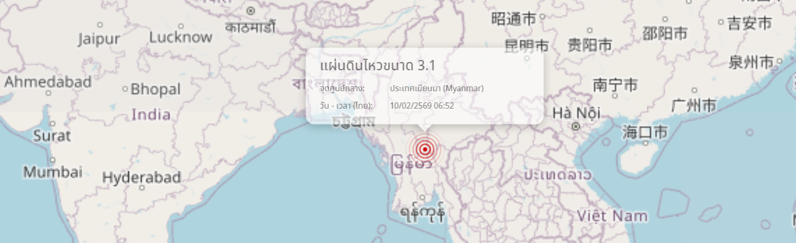 แผ่นดินไหว ประเทศเมียนมา (Myanmar) ขนาด 3.1