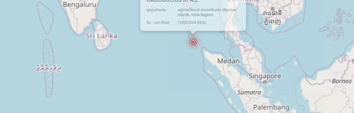 แผ่นดินไหว หมู่เกาะนิโคบาร์ ประเทศอินเดีย (Nicobar Islands, India Region) ขนาด 4.2