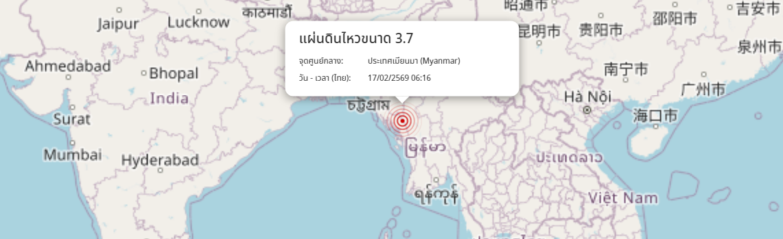 แผ่นดินไหว ประเทศเมียนมา (Myanmar) ขนาด 3.7