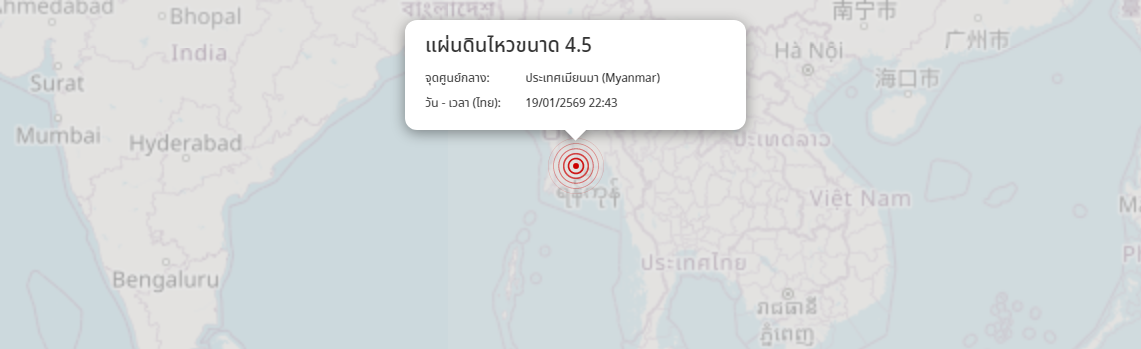 แผ่นดินไหว ประเทศเมียนมา (Myanmar) ขนาด 4.5