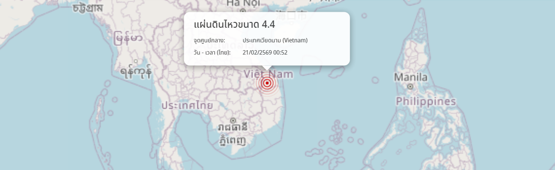 แผ่นดินไหว ประเทศเวียดนาม (Vietnam) ขนาด 4.4