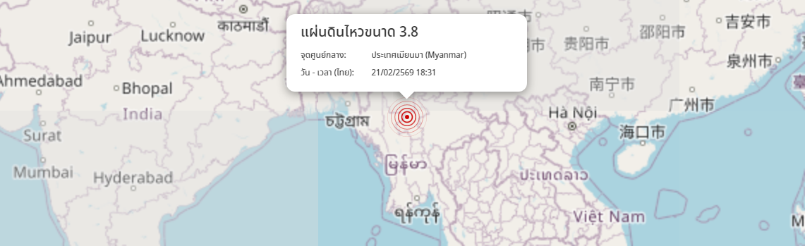 แผ่นดินไหว ประเทศเมียนมา (Myanmar) ขนาด 3.8