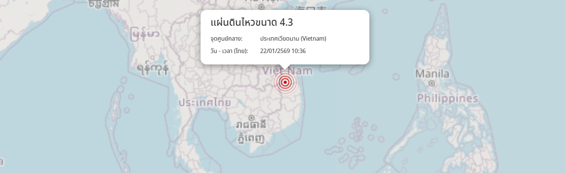แผ่นดินไหว ประเทศเวียดนาม (Vietnam) ขนาด 4.3