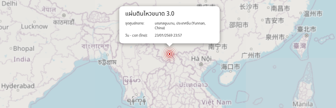 แผ่นดินไหว มณฑลยูนนาน, ประเทศจีน (Yunnan, China) ขนาด 3.0