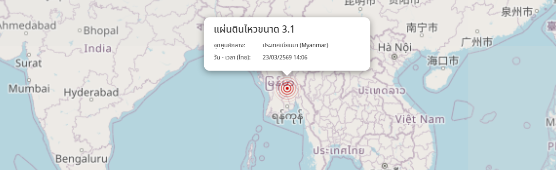 แผ่นดินไหว ประเทศเมียนมา (Myanmar) ขนาด 3.1