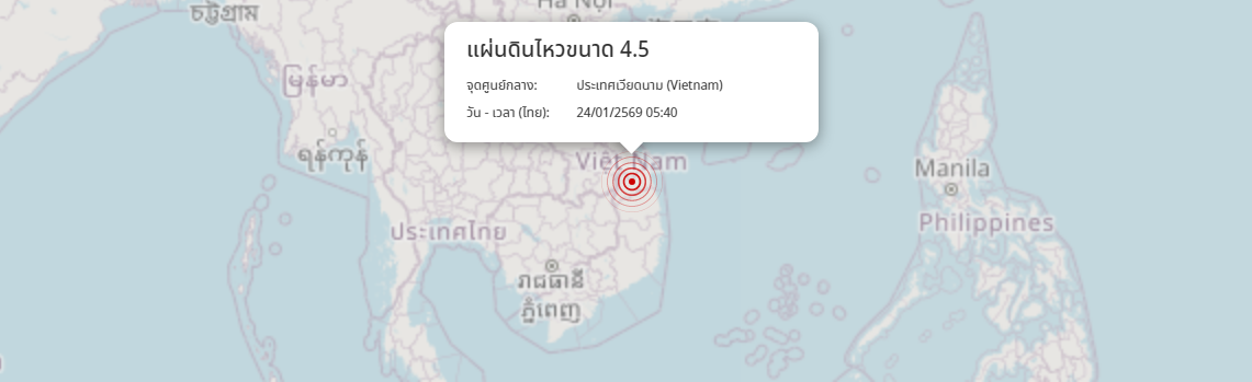 แผ่นดินไหว ประเทศเวียดนาม (Vietnam) ขนาด 4.5