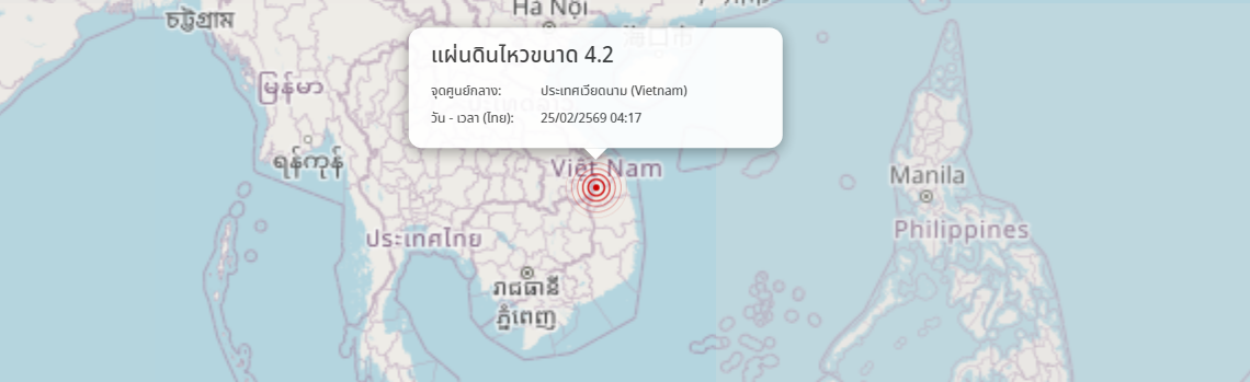 แผ่นดินไหว ประเทศเวียดนาม (Vietnam) ขนาด 4.2