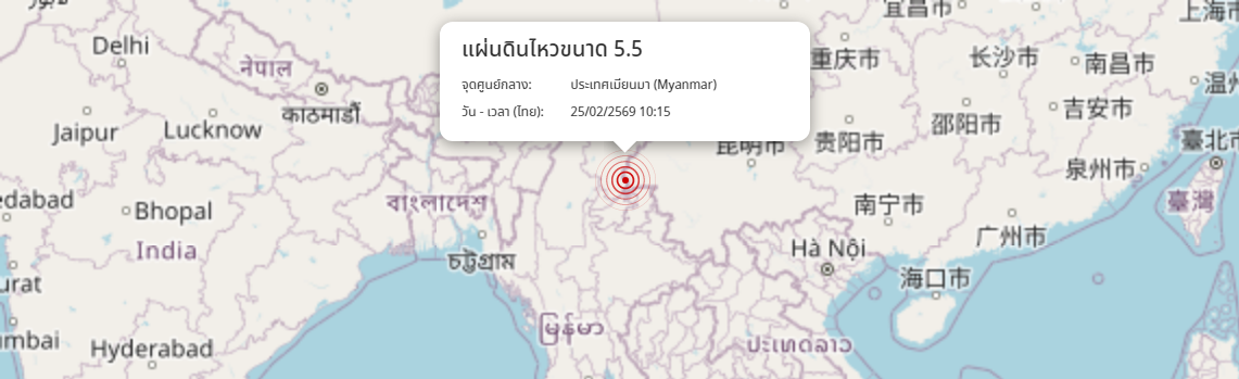 แผ่นดินไหว ประเทศเมียนมา (Myanmar) ขนาด 5.5