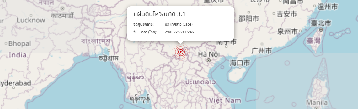 แผ่นดินไหว ประเทศลาว (Laos) ขนาด 3.1