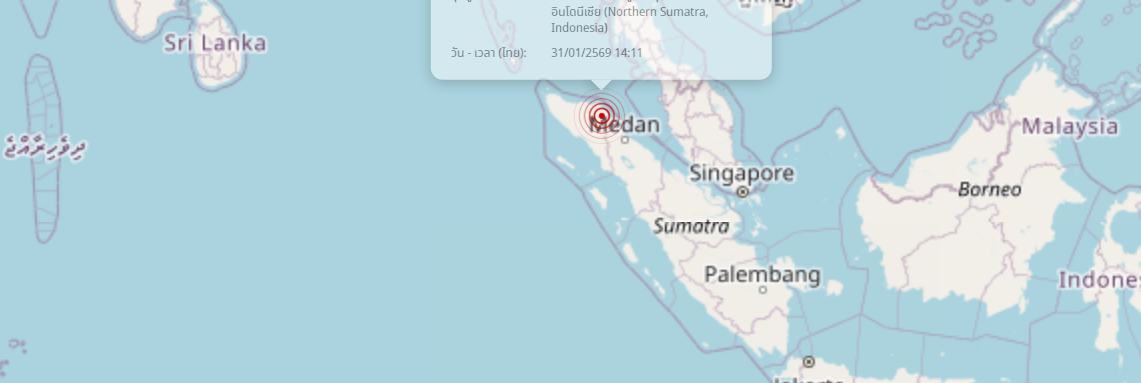 แผ่นดินไหว ตอนเหนือของหมู่เกาะสุมาตรา ประเทศอินโดนีเซีย (Northern Sumatra, Indonesia) ขนาด 3.3