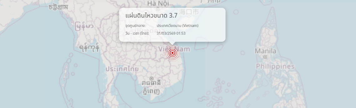 แผ่นดินไหว ประเทศเวียดนาม (Vietnam) ขนาด 3.7